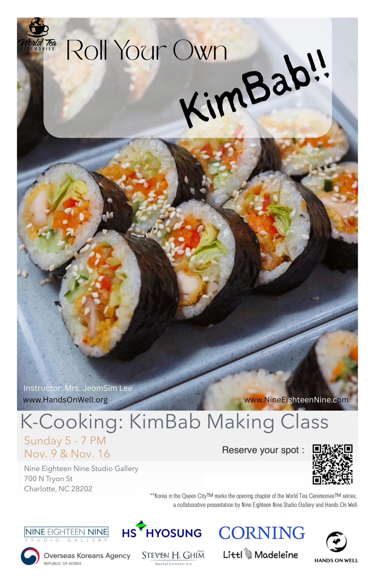 - Everything's Included in your tickets ($15.00/person. Participants will make 2-rolls of KimBab)